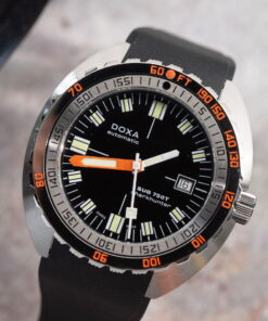 First introduced in 2002, the SUB 750T quickly earned its place among DOXA’s most distinctive dive watches. With its oversized cushion-shaped case, bold dial, and 750-meter water resistance, it was built with professional divers in mind and designed to be read at a glance in the toughest conditions. Two decades later, DOXA revisits the model with an updated design that respects its roots while adapting to modern expectations. The case remains a commanding 45 mm in diameter, but its profile has been slimmed to under 12 mm, giving the watch a noticeably lighter feel on the wrist without compromising its rugged character. SUB 750T carries forward all the elements that made the original a tool of choice: a unidirectional rotating bezel, high-contrast hands, and a dial built for legibility. Every reference features Super-LumiNova® across the indexes, hands, and bezel, ensuring visibility in any environment. At launch, the watch is available in sixteen variations , spanning DOXA’s eight signature colorways , each paired with either the iconic “beads of rice” bracelet or a matching rubber strap. This range offers divers and enthusiasts alike a choice between classic steel presence and a sportier, lightweight feel. Powered by a Swiss automatic movement with a 56-hour power reserve, it is a watch ready for both serious underwater work and everyday wear. With its sharpened lines, slimmer build, and unmistakable DOXA DNA, the SUB 750T is a fresh chapter for a modern icon.
