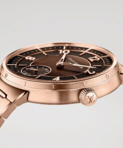 What defines a Tambour watch? It is characterized by a circular case featuring curved sides, prominently engraved with the letters “LOUIS VUITTON” at the 12 o’clock position. It possesses a specific volume and an almost architectural approach to its dimensions and proportions. These attributes, among others, are meticulously maintained and enhanced in the latest iteration of the Tambour timepiece. The essence of design permeates every aspect of Tambour watch. This design transcends mere aesthetics and delves into its purpose and intent. To begin with, it showcases a contemporary form with a universally appealing 40mm diameter and a slender 8.3mm case that elegantly follows the contours of the wearer’s wrist. Notably, the integrated bracelet on Tambour, a novel feature for Louis Vuitton watches, blends strength and fluidity. Its sleek, curved links ensure a snug and comfortable fit on the wrist, comparable to the softest leather strap. Every facet of Louis Vuitton Tambour watch is a product of intentional design, signifying that every detail serves a purpose and has significance. Even the external aspects of the watch, every surface that comes into contact with the skin, are crafted to harmonize with the body. The caseback, for instance, is not flat but gently curves towards the middle of the case, mirroring the natural contour of the forearm as it approaches the wrist. By emulating the anatomy of the human arm, the Tambour watch appears even sleeker than its 8.3mm thickness. The bracelet links, featuring a convex shape on their upper surfaces and concave on the underside, create a rounded profile that maintains continuous contact with the entire wrist.