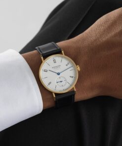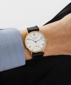 Tangente gold neomatik presents NOMOS’ signature design in its most luxurious form, elevating the brand’s clean geometry with the glow of 18-karat gold. Long regarded as the metal of achievement, gold lends the iconic Tangente both depth and distinction without disturbing its clarity or modern edge. The result is a watch that feels instantly familiar yet newly enriched, carrying a sense of heritage while remaining effortlessly contemporary. Inside beats the ultra-slim automatic DUW 3001, complete with the in-house swing system and the refined hallmarks of Glashütte engineering. The trio of dial options gives the model its expressive range. The white silver-plated version with tempered-blue hands channels the classic Tangente aesthetic. Swap to golden hands and the watch becomes subtly more opulent, while the ruthenium dial introduces a darker, more sophisticated mood. All three variants share the same thoughtful construction, including a solid-gold crown and clasps, with each case crafted from recycled gold that carries its own quiet history. Straps in either black or warm brown Shell Cordovan complete the composition, providing durability and understated elegance in equal measure. Tangente gold neomatik remains a refined companion for daily life, combining precision engineering, enduring materials, and a design language that continues to define NOMOS.